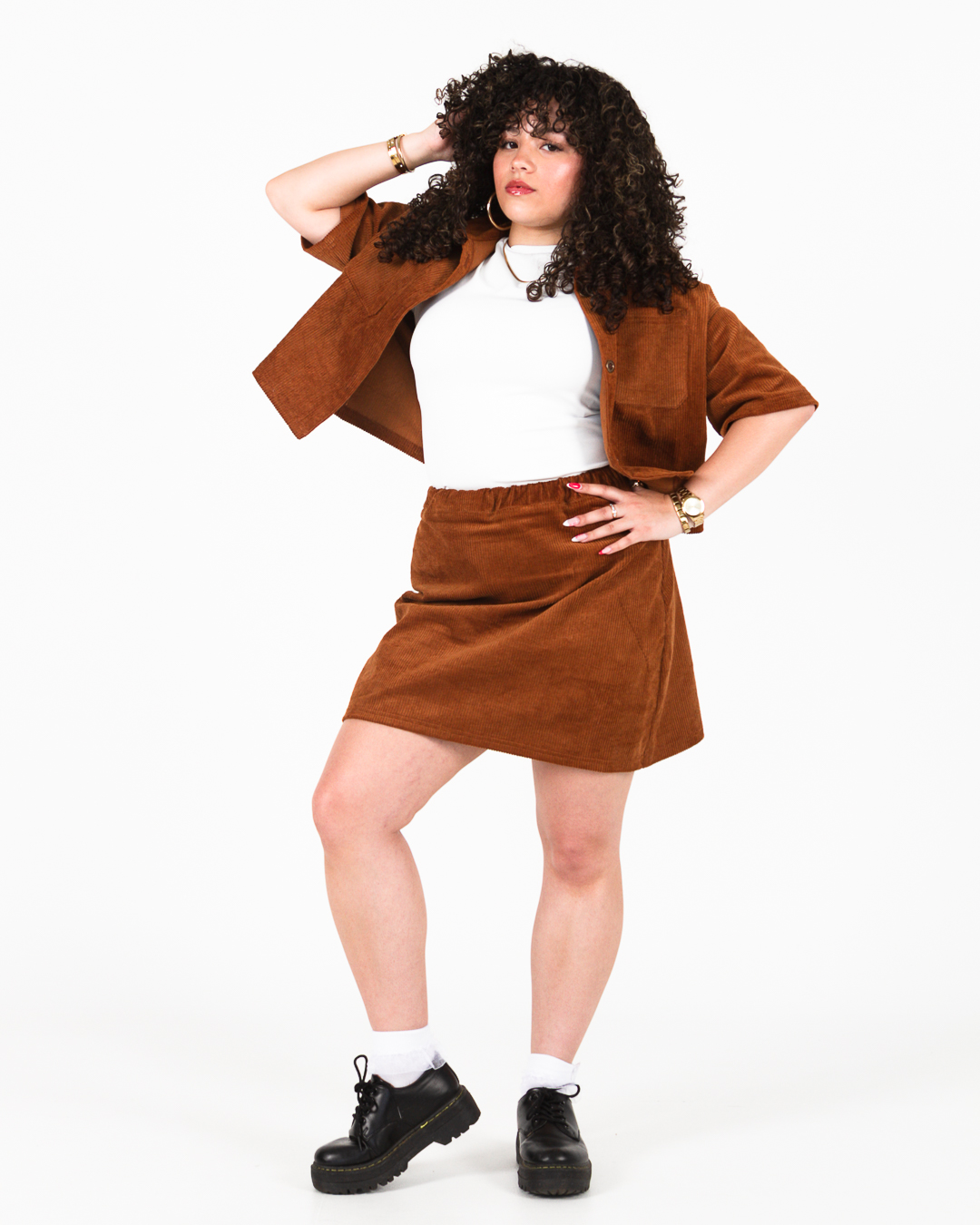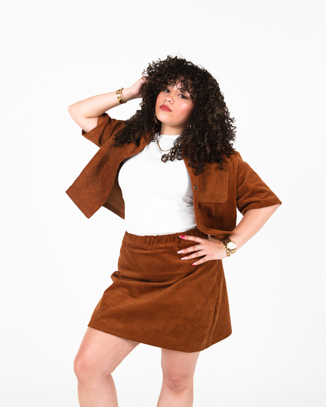 Skirt and Bobbed Shacket Corduroy set